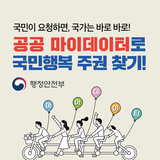 마이데이터란 기업이나 행정기관이 보유한 개인의 정보(생년월일, 주소, 가족관계, 납세, 금융정보 등)를 말합니다. 그중 핵심은 본인 정보에 대한 열람, 통제, 전송요구인데요, 이 전송요구권을 활용하여 행정기관이 보유하고 있는 개인 정보를 필요한 기관에 전송하도록 요구하는 공공 서비스입니다.