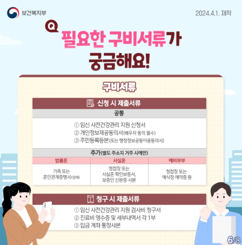 임신 계획하면서 많은 부부들이 임신 출산과 관련한 건강검진을 합니다. 임신 사전건강관리 혹은 산전 검사, 가임력 검사라고 하기도 하는데요, 예방 차원으로 산모와 태아의 건강증진을 목적으로 건강한 임신과 출산이 그 목적입니다. 남녀 모두 검사를 받는데요, 4월부터 이 가임력 검사비를 지원받으실 수 있습니다. 자세히 알아볼게요.
