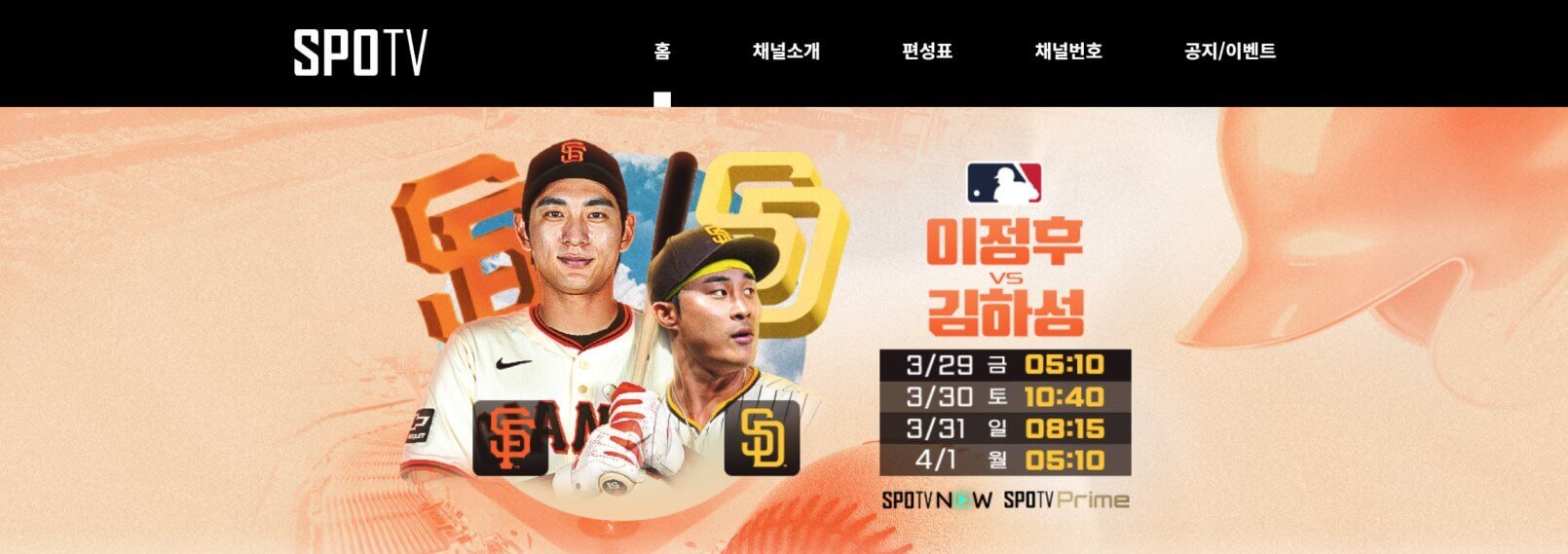 지난 메이저리그 개막전 서울시리즈는 현장 관람하셨나요? 올해는 야구팬들에게 즐거운 일이 많이 있는 것 같습니다. 메이저리그 개막전 서울시리즈도 그렇고 메이저리그에 진출한 우리 선수들이 좋은 성적을 내는 것도 팬으로서 즐거운 일입니다. 오는 3월 29일부터 미국 메이저리그 개막전이 시작됩니다. 이정후 선수와 김하성 선수 맞대결이 바로 시작됩니다. 일정 중계 체크해 보겠습니다.