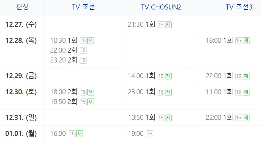 ● 재방송 : TV조선, TV CHOSUN2, TV 조선3