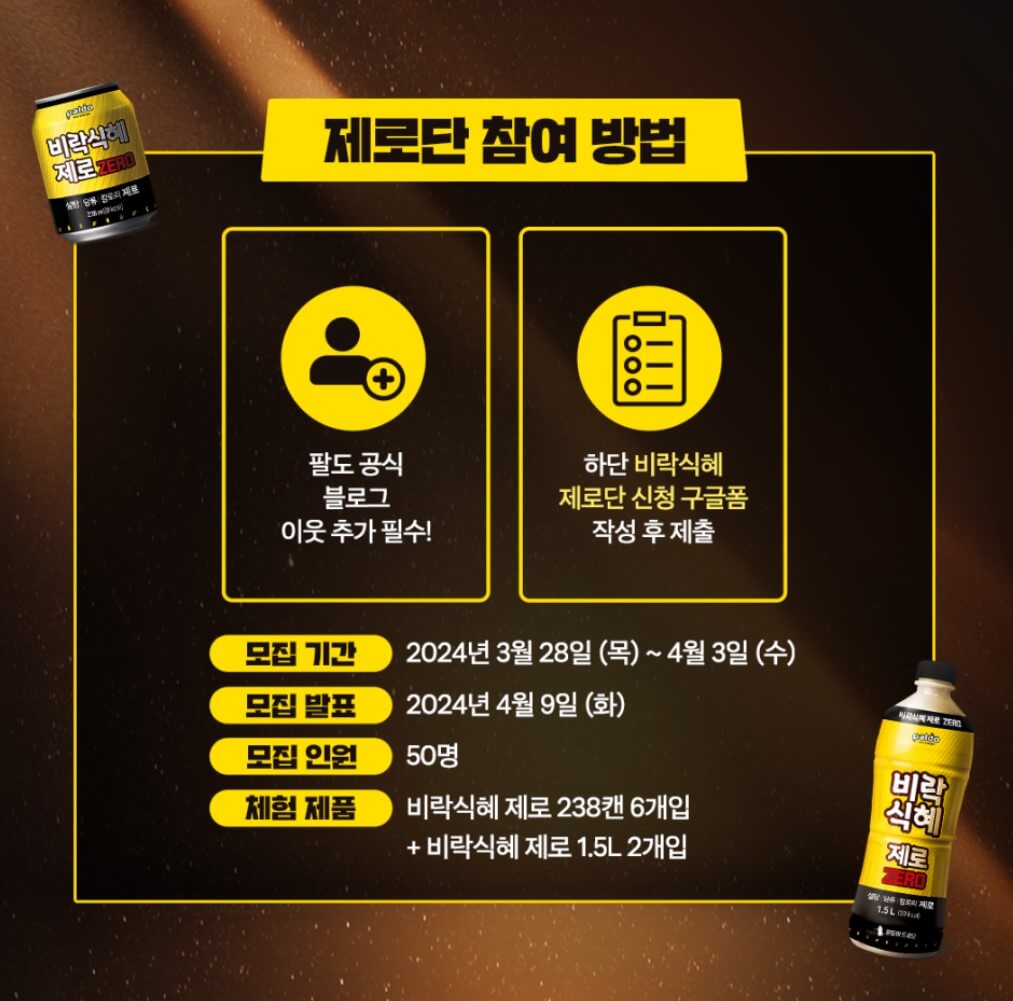 비락식혜 제로 출시를 맞아 체험단을 모집하고 있습니다. 비락식혜 체험단 신청해서 단맛이 제거된 식혜의 산뜻한 맛을 경험해 보세요.