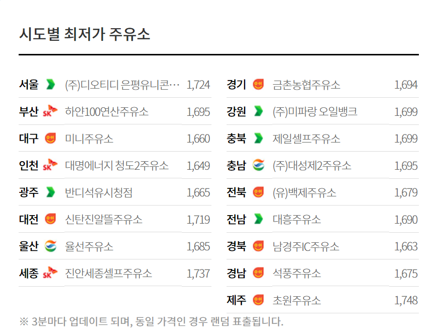 1. 내 주변 주유소 찾기 / 지역별 주유소