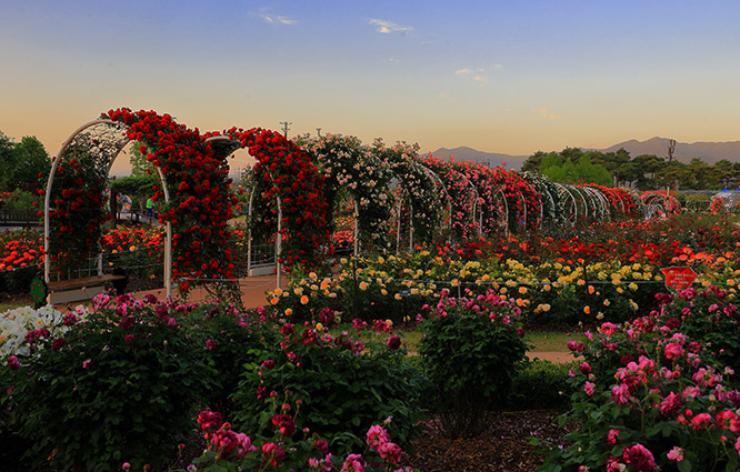 곡성세계장미축제는 곡성세계장미축제는 매년 30만 명 이상이 찾아오는 대표적인 꽃축제입니다. 관람객을 위해 개막식, 폐막식을 비롯해 주말이면 유명한 초대가수의 공연을 관람할 수 있도록 다양한 테마의 무대를 마련했습니다. 만발한 장미꽃도 보고 가수 공연도 관람하시기 바랍니다.