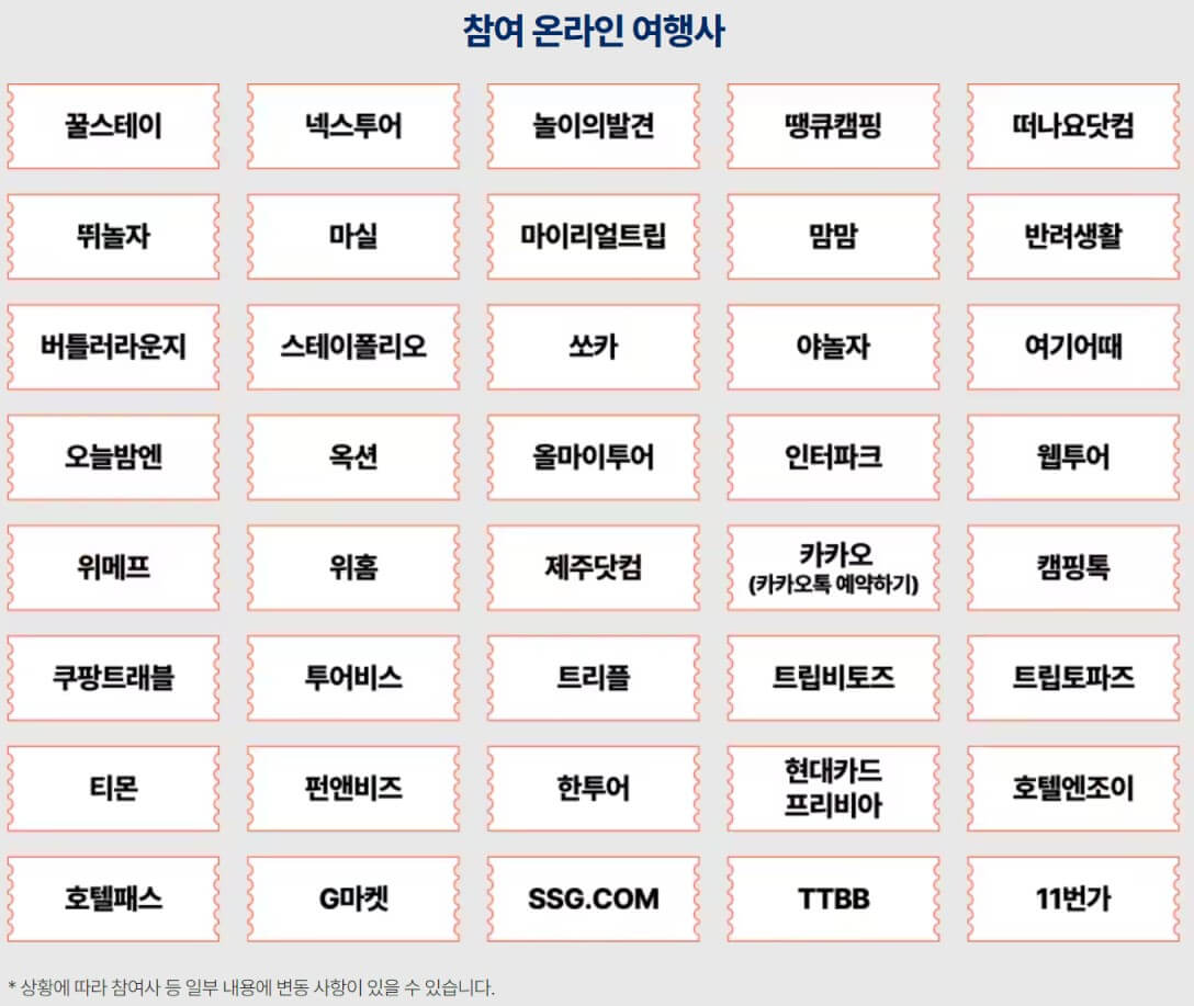 할인행사에 참여하는 여행사는 아래 이미지를 참고하세요.